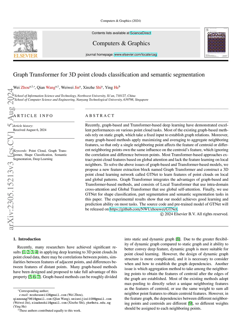 GTNet: Graph Transformer Network for 3D Point Cloud Classification and