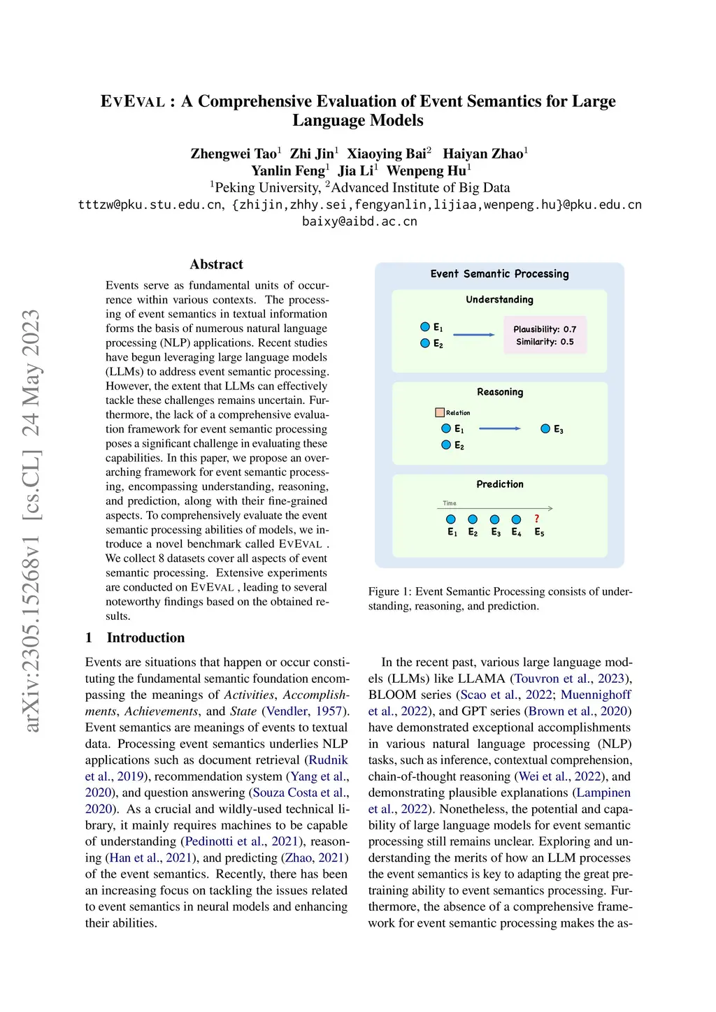 EvEval: A Comprehensive Evaluation of Event Semantics for Large Language