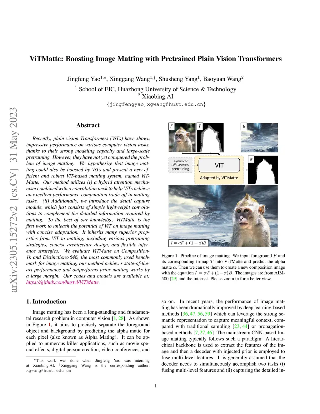 ViTMatte: Boosting Image Matting with Pretrained Plain Vision