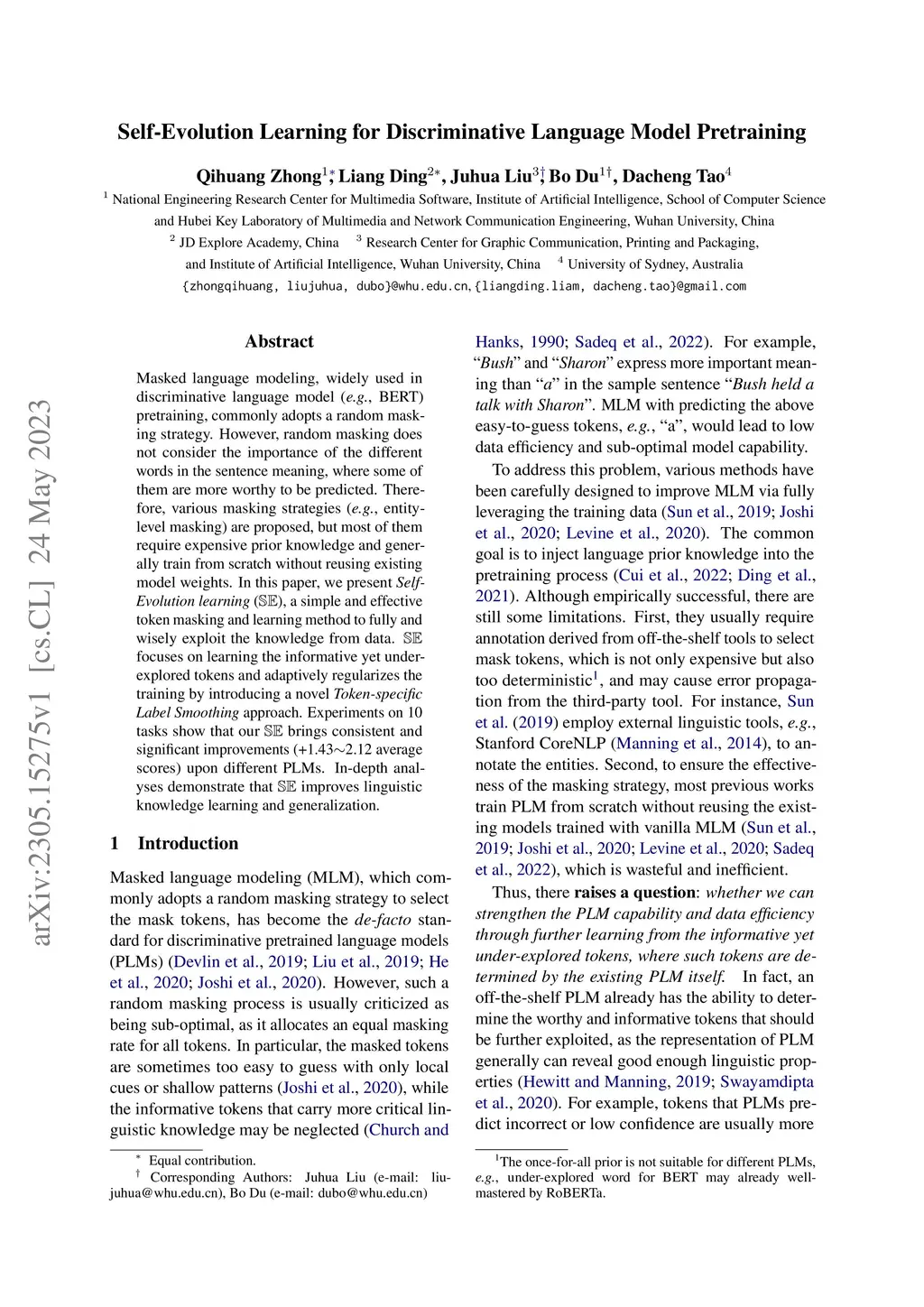 Self-Evolution Learning for Discriminative Language Model Pretraining