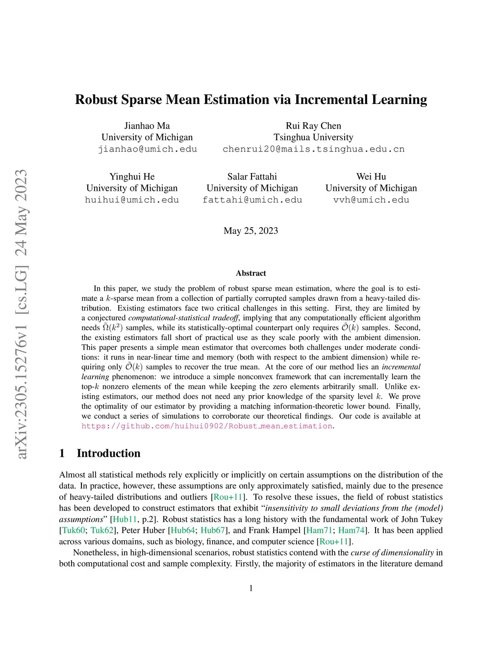 In this paper, we study the problem of sparse mean estimation under adversarial corruptions, where the goal is to estimate the -sparse mean of a heavy-tailed distribution from samples contaminated by adversarial noise. Existing methods face two key limitations: they require prior knowledge of the sparsity level and scale poorly to high-dimensional settings. We propose a simple and scalable estimator that addresses both challenges. Specifically, it learns the -sparse mean without knowing in advance and operates in near-linear time and memory with respect to the ambient dimension. Under a moderate signal-to-noise ratio, our method achieves the optimal statistical rate, matching the information-theoretic lower bound. Extensive simulations corroborate our theoretical guarantees. At the heart of our approach is an incremental learning phenomenon: we show that a basic subgradient method applied to a nonconvex two-layer formulation with an -loss can incrementally learn the nonzero components of the true mean while suppressing the rest. More broadly, our work is the first to reveal the incremental learning phenomenon of the subgradient method in the presence of heavy-tailed distributions and adversarial corruption.
