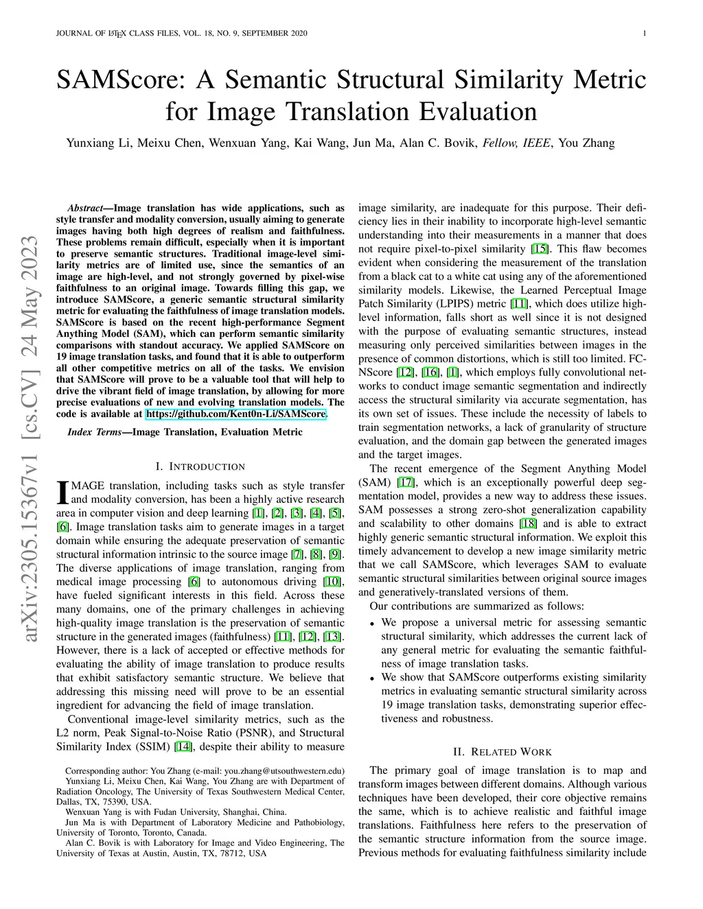 SAMScore: A Content Structural Similarity Metric for Image Translation Evaluation