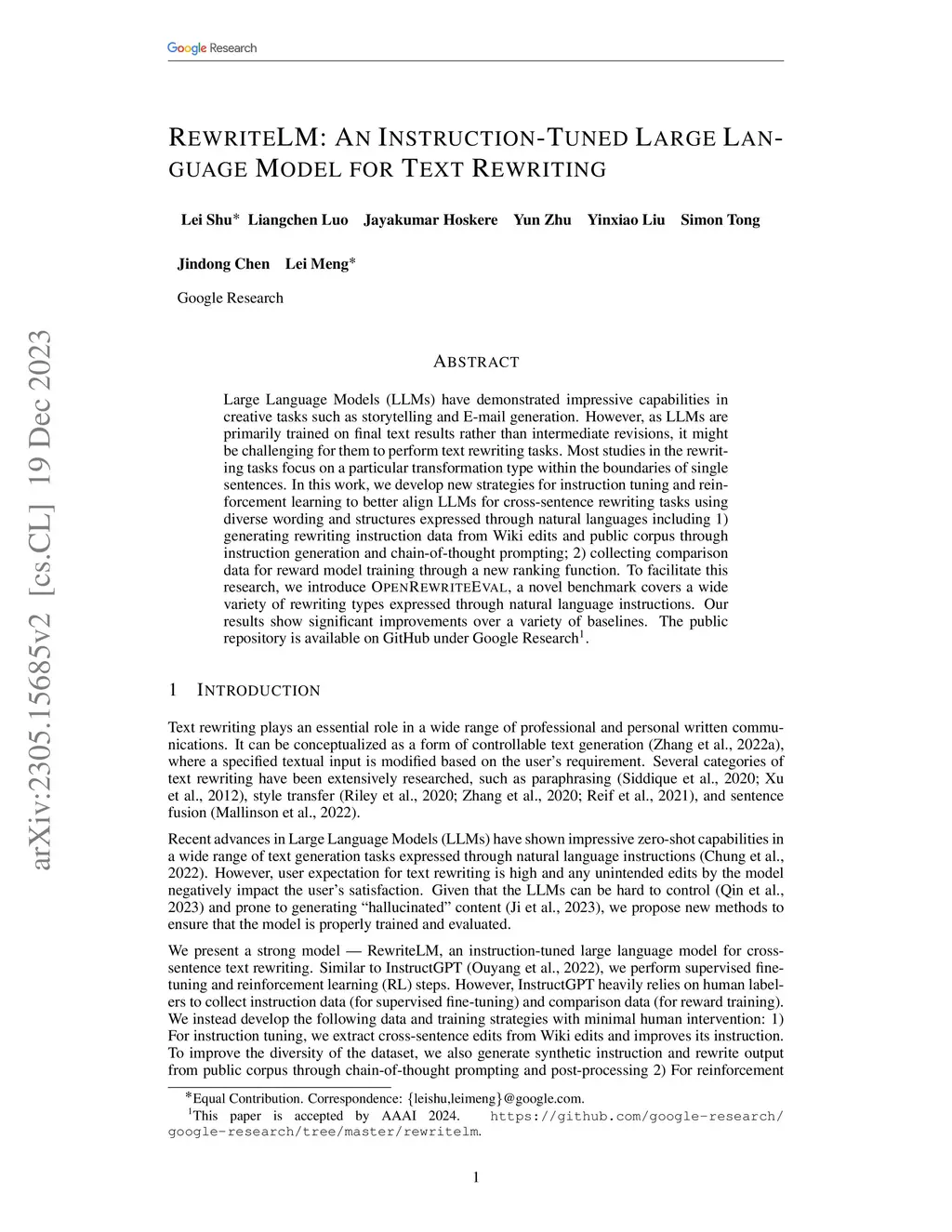 RewriteLM: An Instruction-Tuned Large Language Model for Text Rewriting