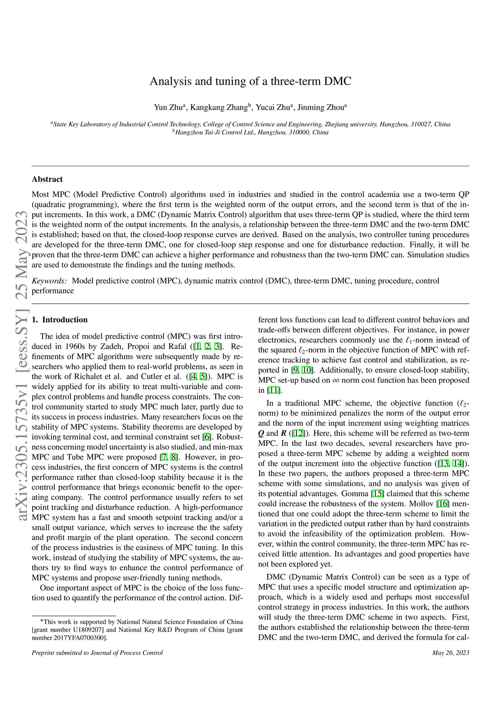 Most MPC (Model Predictive Control) algorithms used in industries and studied in the control academia use a two-term QP (quadratic programming), where the first term is the weighted norm of the output errors, and the second term is that of the input increments. In this work, a DMC (Dynamic Matrix Control) algorithm that uses three-term QP is studied, where the third term is the weighted norm of the output increments. In the analysis, a relationship between the three-term DMC and the two-term DMC is established; based on that, the closed-loop response curves are derived. Based on the analysis, two controller tuning procedures are developed for the three-term DMC, one for closed-loop step response and one for disturbance reduction. Finally, it will be proven that the three-term DMC can achieve a higher performance and robustness than the two-term DMC can. Simulation studies are used to demonstrate the findings and the tuning methods.