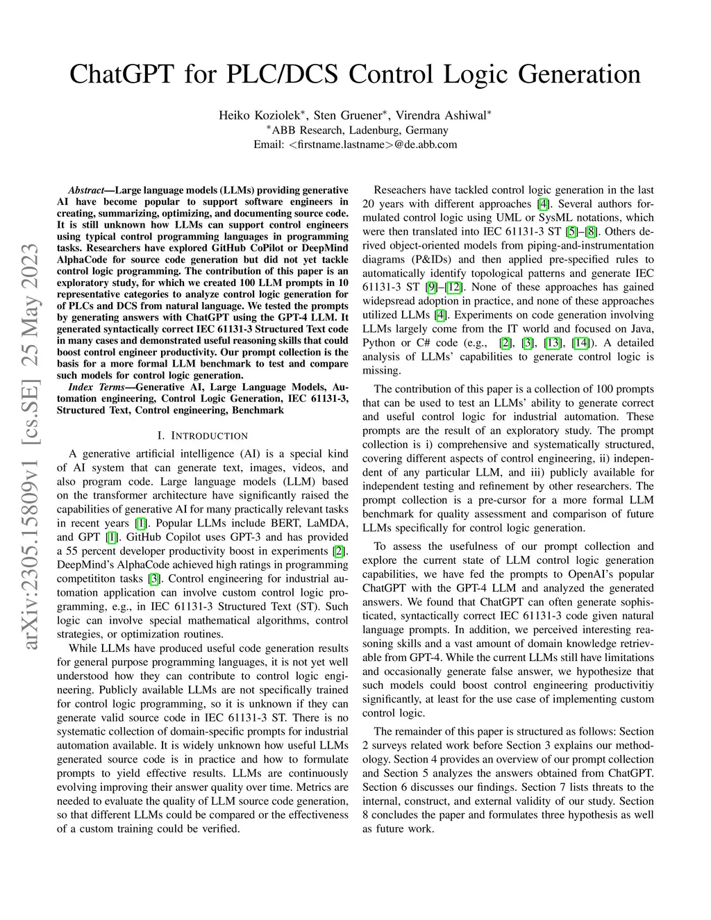 ChatGPT for PLC/DCS Control Logic Generation