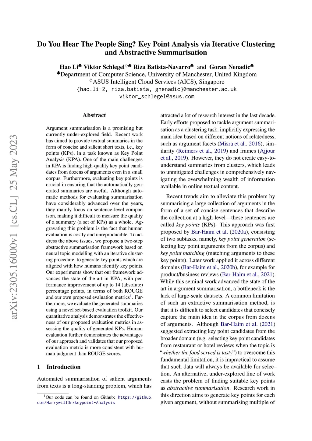 Do You Hear The People Sing? Key Point Analysis via Iterative Clustering