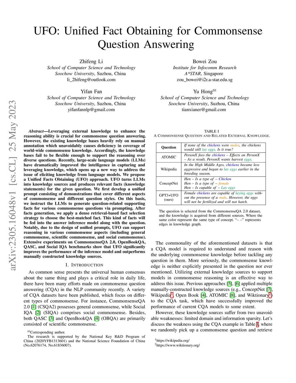 UFO: Unified Fact Obtaining for Commonsense Question Answering