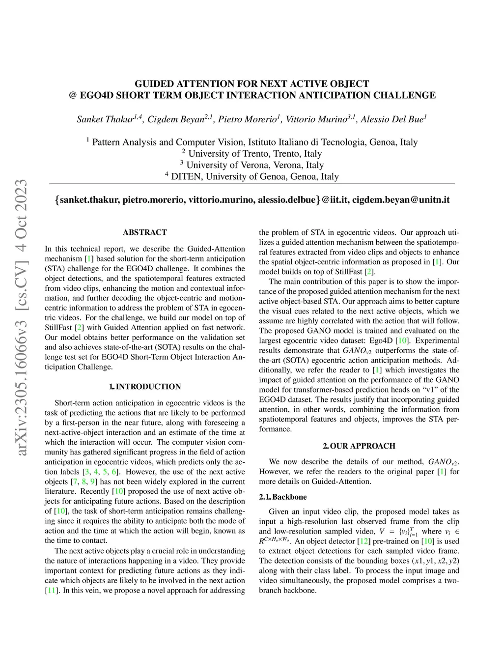 In this technical report, we describe the Guided-Attention mechanism based solution for the short-term anticipation (STA) challenge for the EGO4D challenge. It combines the object detections, and the spatiotemporal features extracted from video clips, enhancing the motion and contextual information, and further decoding the object-centric and motion-centric information to address the problem of STA in egocentric videos. For the challenge, we build our model on top of StillFast with Guided Attention applied on fast network. Our model obtains better performance on the validation set and also achieves state-of-the-art (SOTA) results on the challenge test set for EGO4D Short-Term Object Interaction Anticipation Challenge.