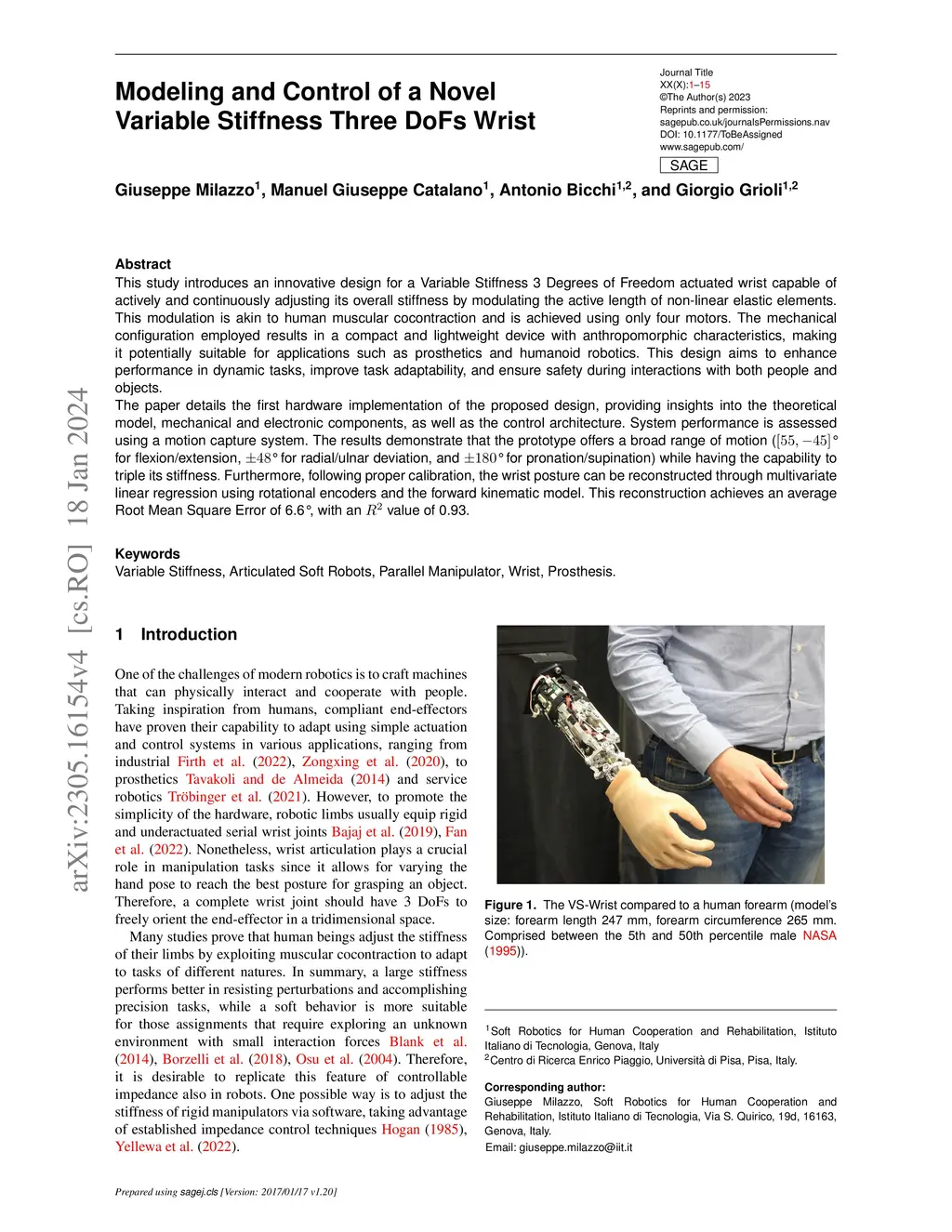 Modeling and Control of a Novel Variable Stiffness Three DoFs Wrist