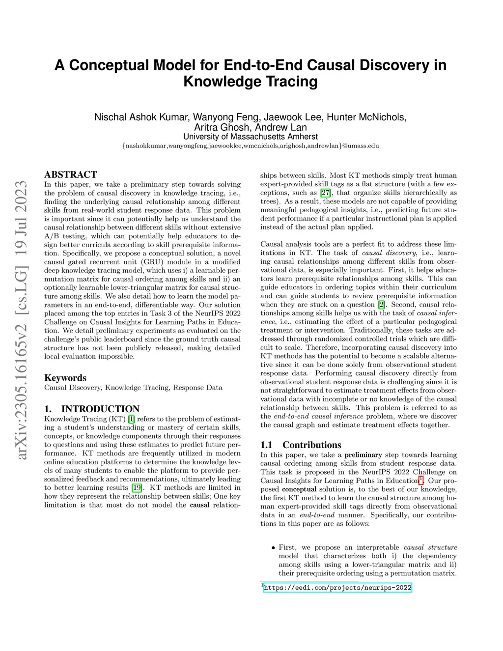 A Conceptual Model for End-to-End Causal Discovery in Knowledge Tracing