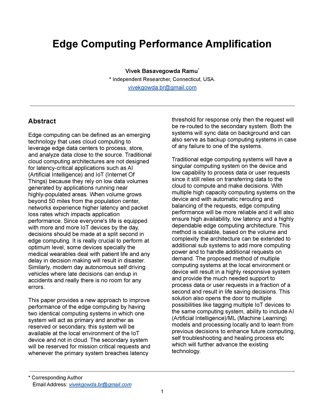 Edge computing can be defined as an emerging technology that uses cloud computing to leverage edge data centers to process, store, and analyze data close to the source. Traditional cloud computing architectures are not designed for latency-critical applications such as AI (Artificial Intelligence) and IoT (Internet Of Things) because they rely on low data volumes generated by applications running near highly-populated areas. When volume grows beyond 50 miles from the population center, networks experience higher latency and packet loss rates which impacts application performance. Since everyone's life is equipped with more and more IoT devices by the day, decisions should be made at a split second in edge computing. It is really crucial to perform at optimum level, some devices specially the medical wearables deal with patient life and any delay in decision making will result in disaster. Similarly, modern day autonomous self driving vehicles where late decisions can endup in accidents and really there is no room for any errors. This paper provides a new approach to improve performance of the edge computing by having two identical computing systems in which one system will act as primary and another as reserved or secondary, this system will be available at the local environment of the IoT device and not in cloud. The secondary system will be reserved for mission critical requests and whenever the primary system breaches latency threshold for response only then the request will be re-routed to the secondary system. Both the systems will sync data on background and can also serve as backup computing systems in case of any failure to one of the systems.