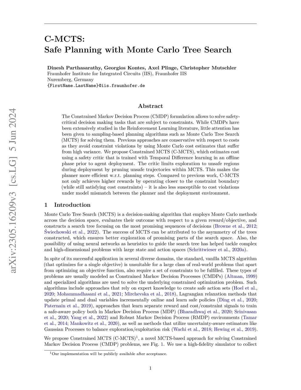 C-MCTS: Safe Planning with Monte Carlo Tree Search