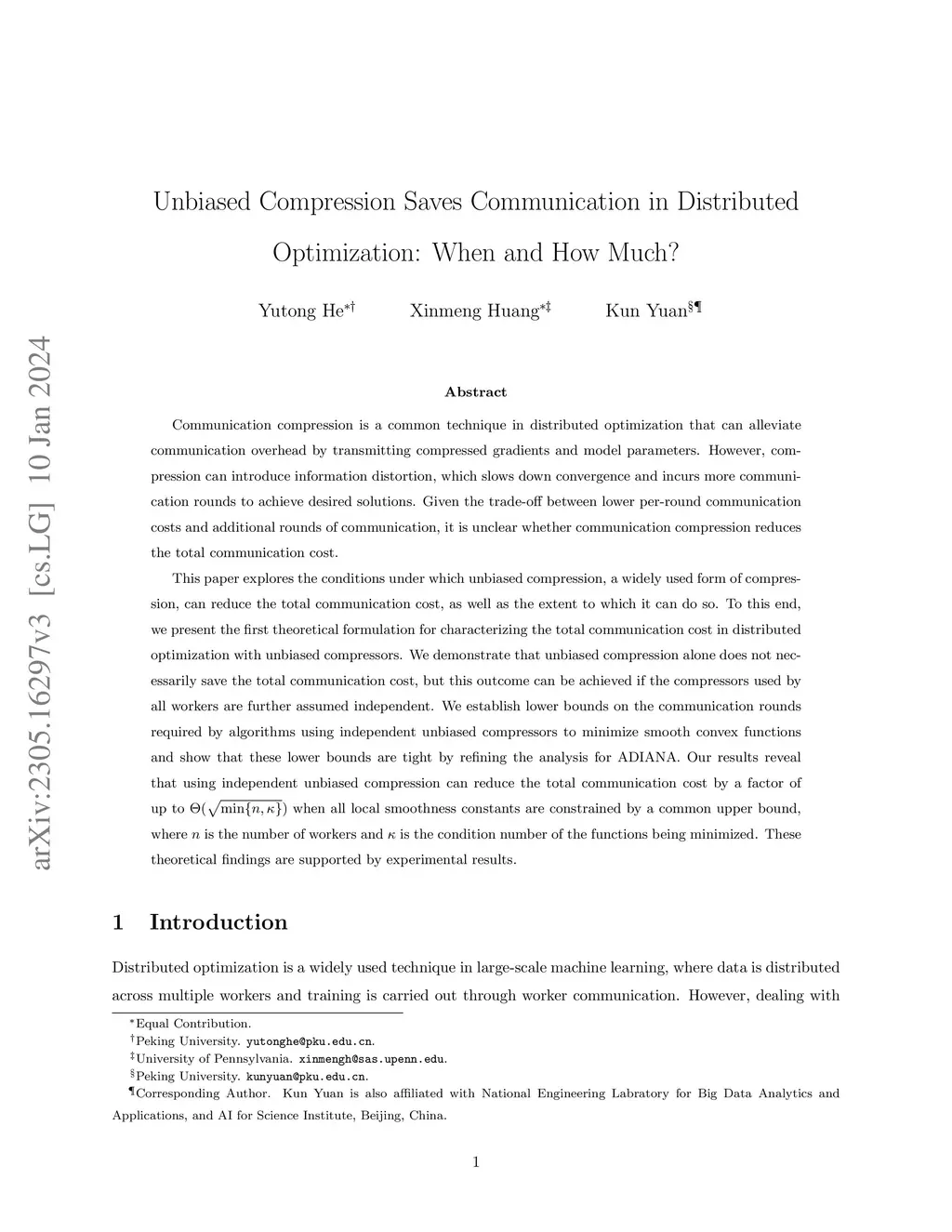 Unbiased Compression Saves Communication in Distributed Optimization: