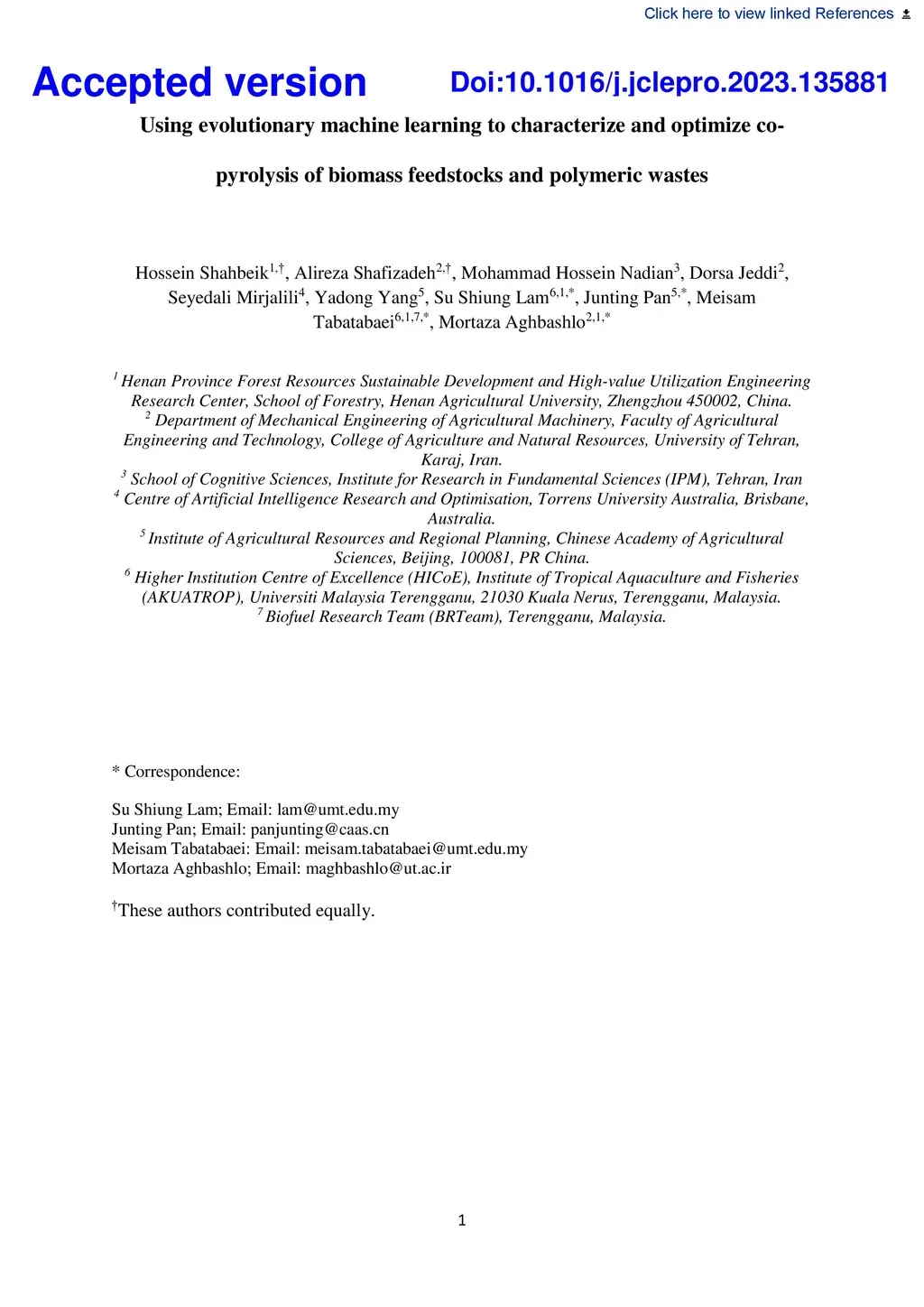 Co-pyrolysis of biomass feedstocks with polymeric wastes is a promising strategy for improving the quantity and quality parameters of the resulting liquid fuel. Numerous experimental measurements are typically conducted to find the optimal operating conditions. However, performing co-pyrolysis experiments is highly challenging due to the need for costly and lengthy procedures. Machine learning (ML) provides capabilities to cope with such issues by leveraging on existing data. This work aims to introduce an evolutionary ML approach to quantify the (by)products of the biomass-polymer co-pyrolysis process. A comprehensive dataset covering various biomass-polymer mixtures under a broad range of process conditions is compiled from the qualified literature. The database was subjected to statistical analysis and mechanistic discussion. The input features are constructed using an innovative approach to reflect the physics of the process. The constructed features are subjected to principal component analysis to reduce their dimensionality. The obtained scores are introduced into six ML models. Gaussian process regression model tuned by particle swarm optimization algorithm presents better prediction performance (R2 > 0.9, MAE < 0.03, and RMSE < 0.06) than other developed models. The multi-objective particle swarm optimization algorithm successfully finds optimal independent parameters.
