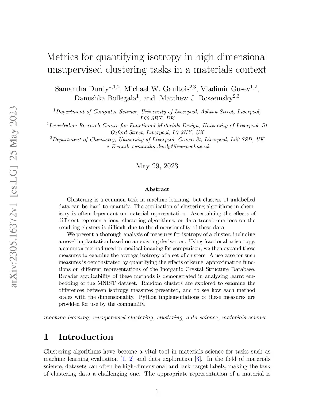 clustering tasks in a materials context