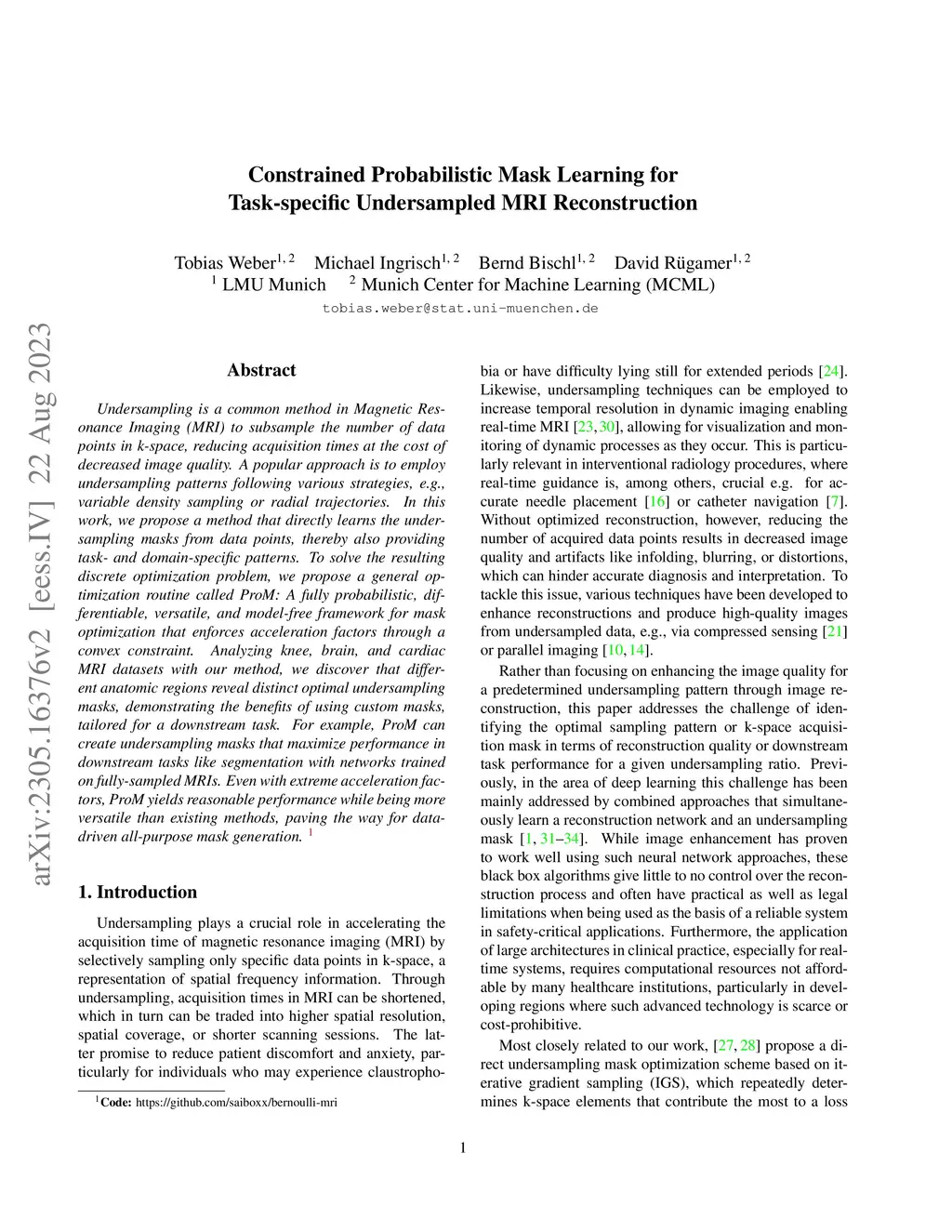 Undersampling is a common method in Magnetic Resonance Imaging (MRI) to subsample the number of data points in k-space, reducing acquisition times at the cost of decreased image quality. A popular approach is to employ undersampling patterns following various strategies, e.g., variable density sampling or radial trajectories. In this work, we propose a method that directly learns the undersampling masks from data points, thereby also providing task- and domain-specific patterns. To solve the resulting discrete optimization problem, we propose a general optimization routine called ProM: A fully probabilistic, differentiable, versatile, and model-free framework for mask optimization that enforces acceleration factors through a convex constraint. Analyzing knee, brain, and cardiac MRI datasets with our method, we discover that different anatomic regions reveal distinct optimal undersampling masks, demonstrating the benefits of using custom masks, tailored for a downstream task. For example, ProM can create undersampling masks that maximize performance in downstream tasks like segmentation with networks trained on fully-sampled MRIs. Even with extreme acceleration factors, ProM yields reasonable performance while being more versatile than existing methods, paving the way for data-driven all-purpose mask generation.