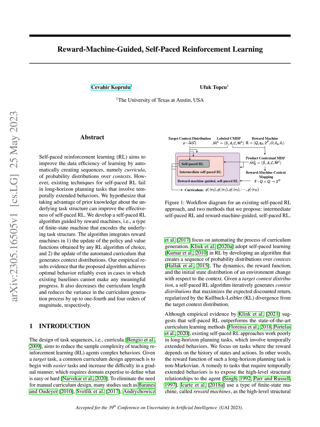 Reward-Machine-Guided, Self-Paced Reinforcement Learning