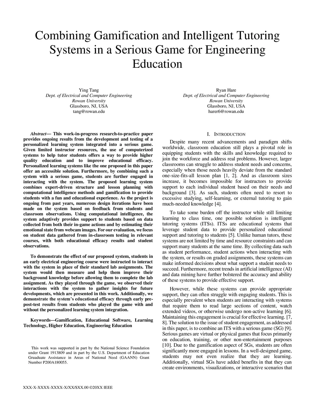 We provide ongoing results from the development of a personalized learning system integrated into a serious game. Given limited instructor resources, the use of computerized systems to help tutor students offers a way to provide higher quality education and to improve educational efficacy. Personalized learning systems like the one proposed in this paper offer an accessible solution. Furthermore, by combining such a system with a serious game, students are further engaged in interacting with the system. The proposed learning system combines expert-driven structure and lesson planning with computational intelligence methods and gamification to provide students with a fun and educational experience. As the project is ongoing from past years, numerous design iterations have been made on the system based on feedback from students and classroom observations. Using computational intelligence, the system adaptively provides support to students based on data collected from both their in-game actions and by estimating their emotional state from webcam images. For our evaluation, we focus on student data gathered from in-classroom testing in relevant courses, with both educational efficacy, results and student observations. To demonstrate the effect of our proposed system, students in an early electrical engineering course were instructed to interact with the system in place of a standard lab assignment. The system would then measure and help them improve their background knowledge before allowing them to complete the lab assignment. As they played through the game, we observed their interactions with the system to gather insights for future work. Additionally, we demonstrate the system's educational efficacy through pre-post-test results from students who played the game with and without the personalized learning system.