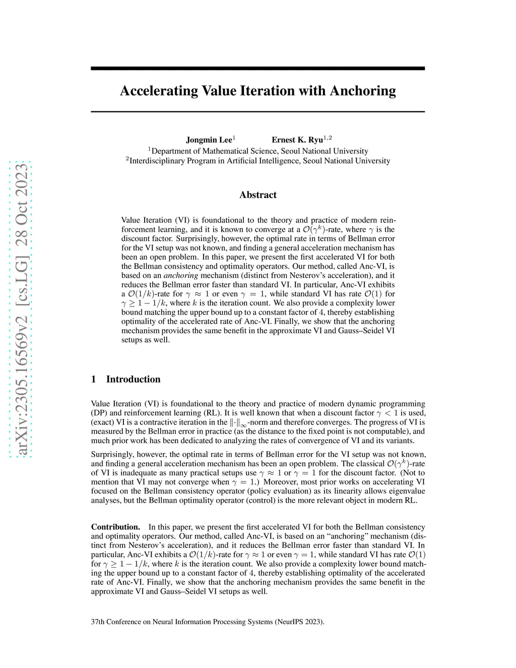 Accelerating Value Iteration with Anchoring
