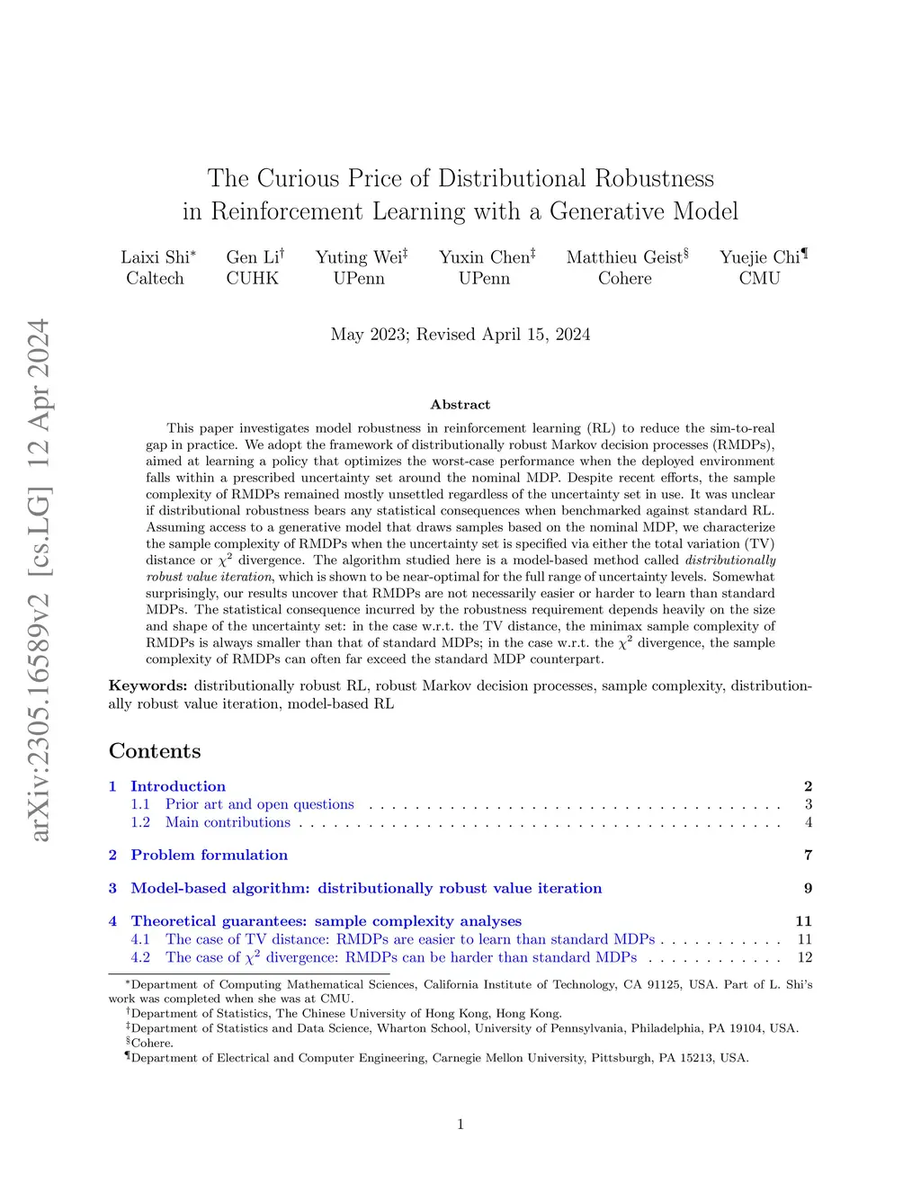 The Curious Price of Distributional Robustness in Reinforcement Learning with a Generative Model