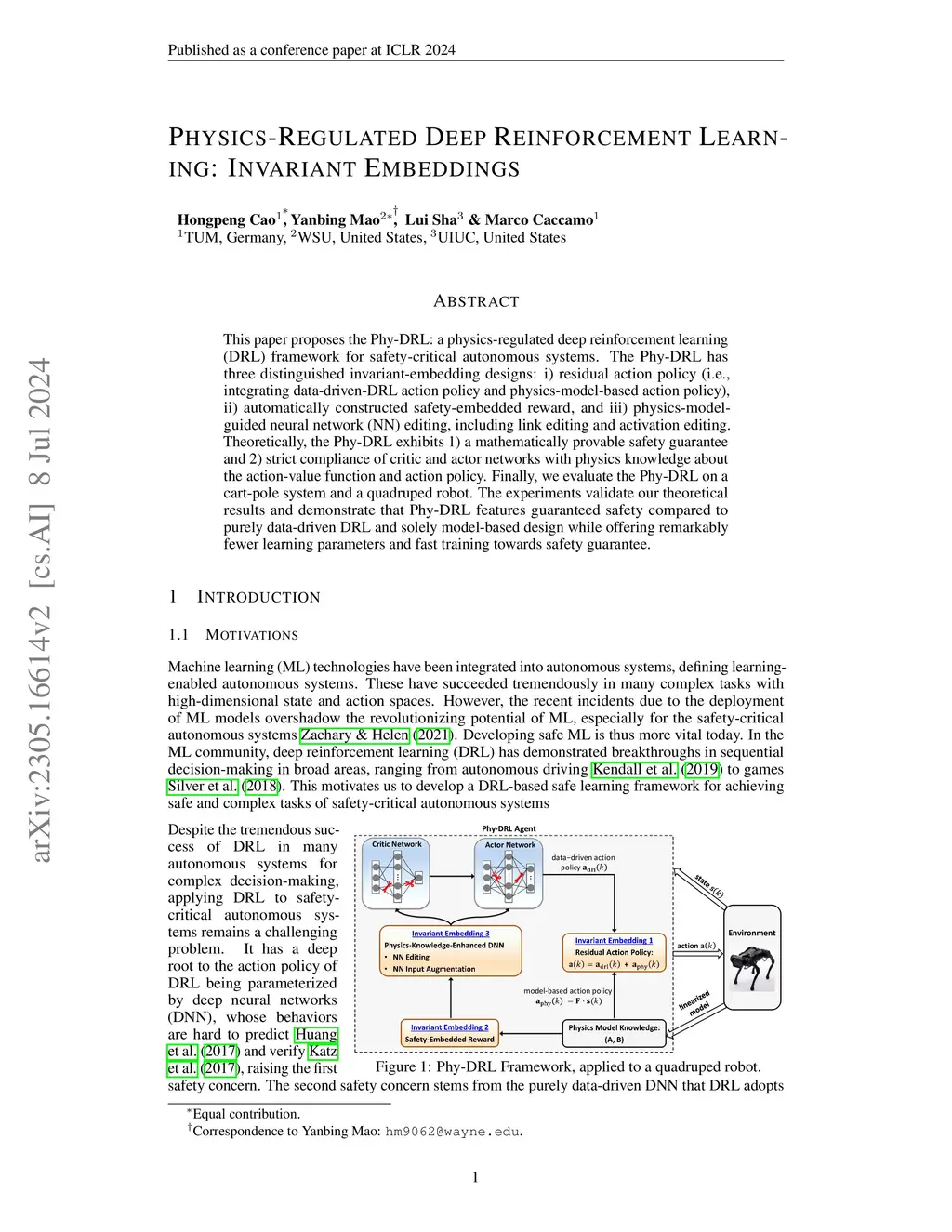Physics-Regulated Deep Reinforcement Learning: Invariant Embeddings
