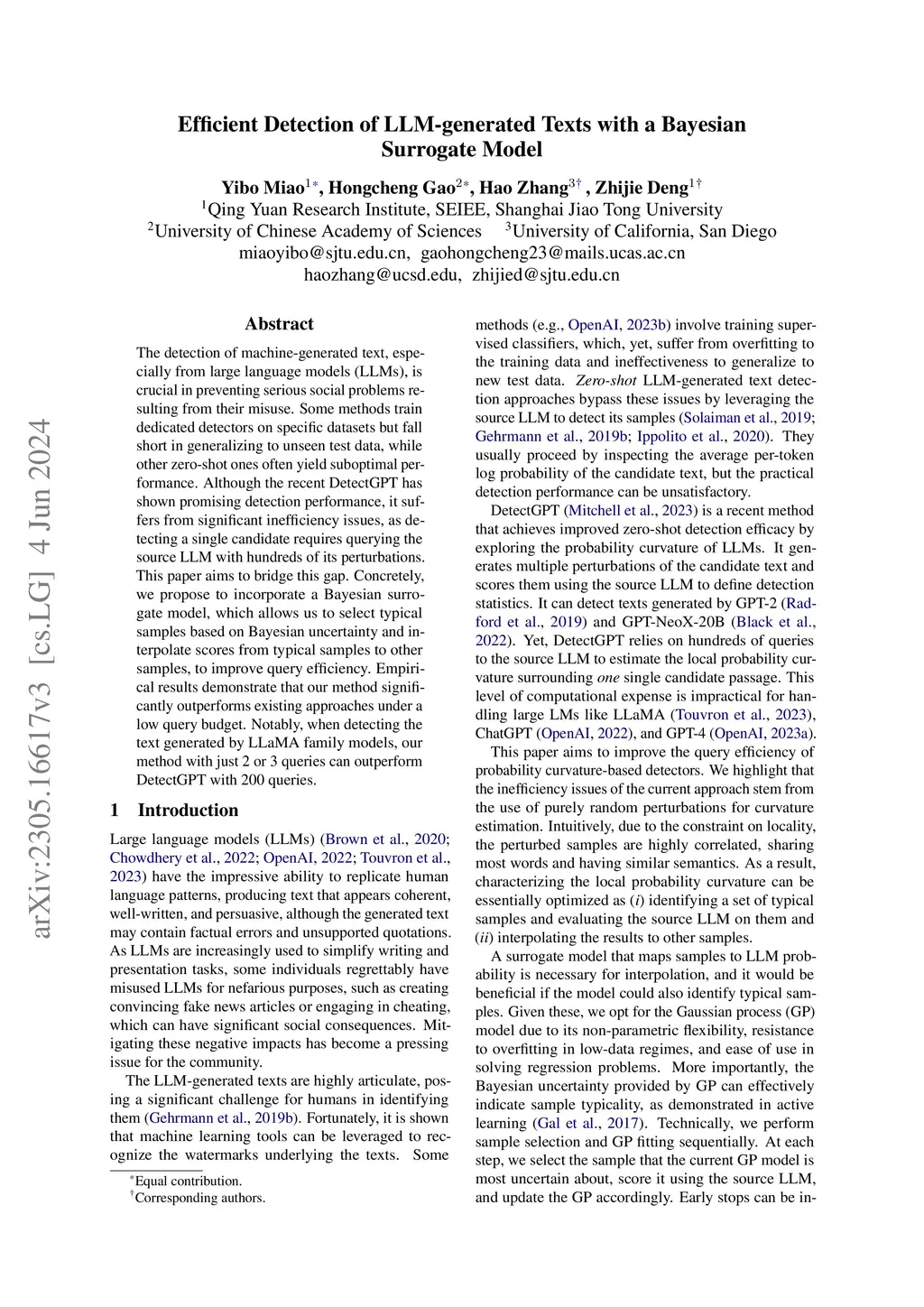 Efficient Detection of LLM-generated Texts with a Bayesian Surrogate