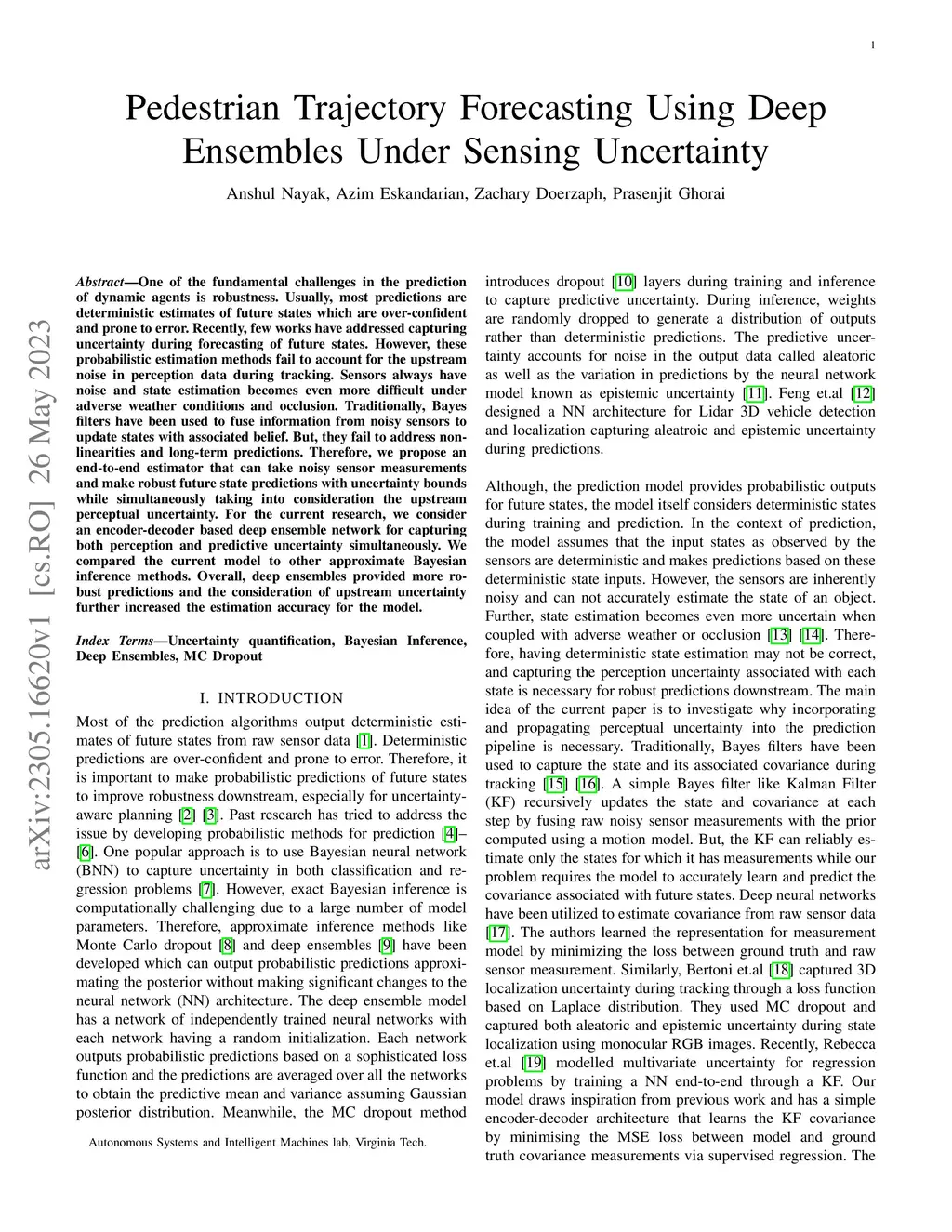 Pedestrian Trajectory Forecasting Using Deep Ensembles Under Sensing