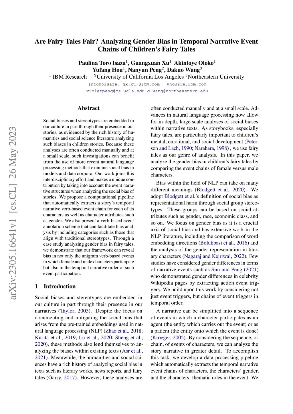 Are Fairy Tales Fair? Analyzing Gender Bias in Temporal Narrative Event