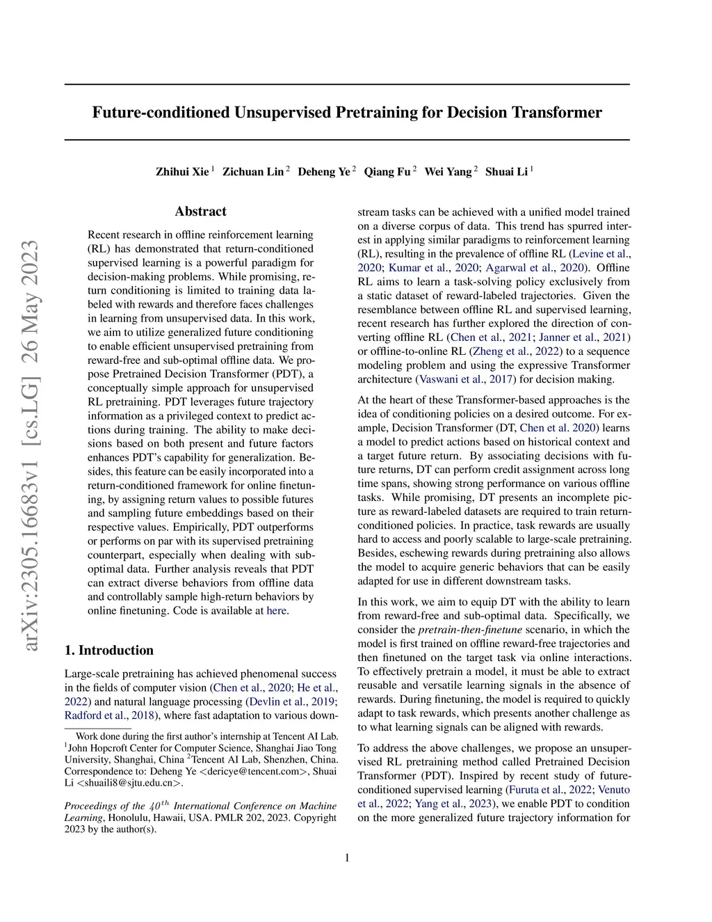 Future-conditioned Unsupervised Pretraining for Decision Transformer
