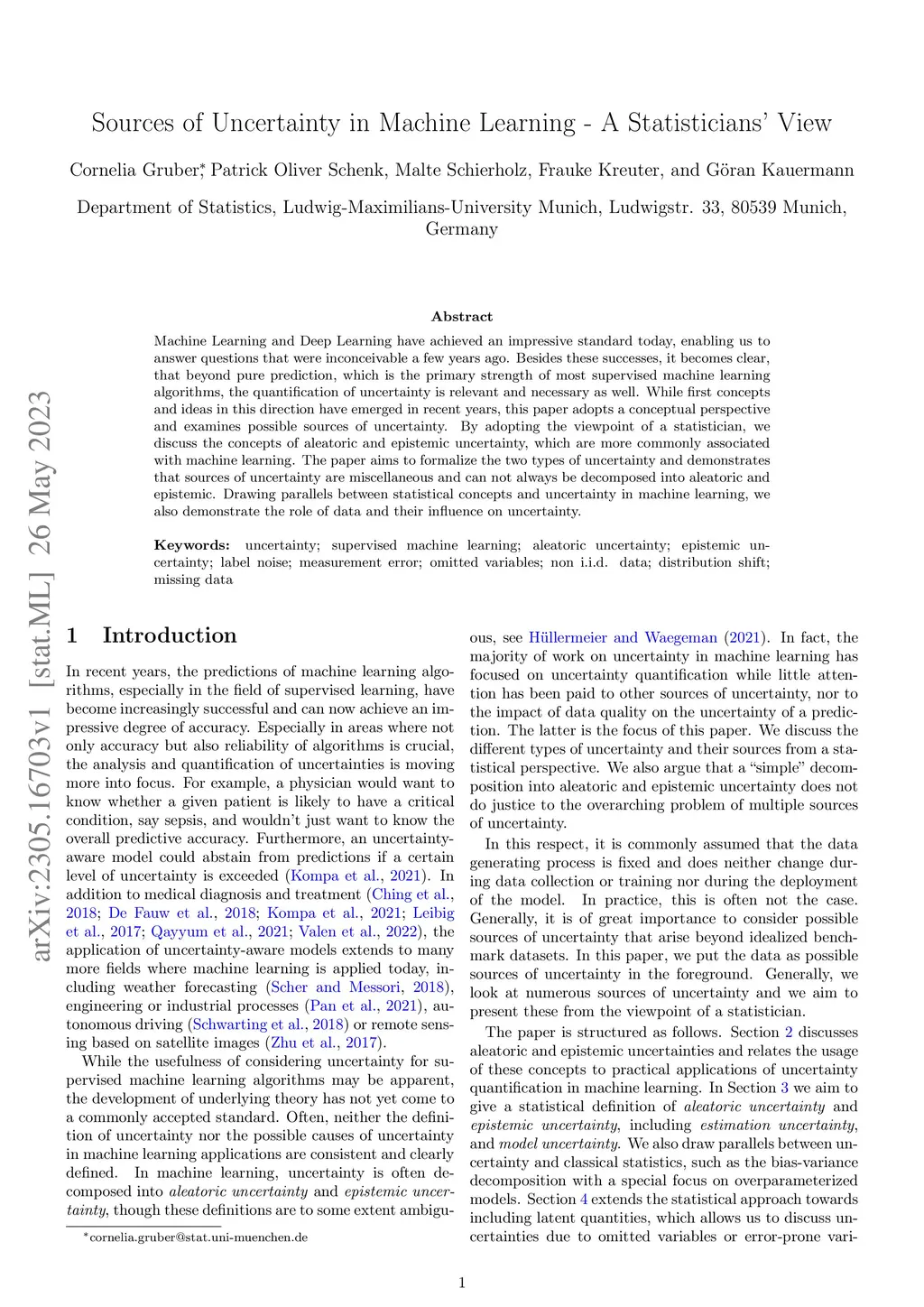 Supervised machine learning and predictive models have achieved an impressive standard today, enabling us to answer questions that were inconceivable a few years ago. Besides these successes, it becomes clear, that beyond pure prediction, which is the primary strength of most supervised machine learning algorithms, the quantification of uncertainty is relevant and necessary as well. However, before quantification is possible, types and sources of uncertainty need to be defined precisely. While first concepts and ideas in this direction have emerged in recent years, this paper adopts a conceptual, basic science perspective and examines possible sources of uncertainty. By adopting the viewpoint of a statistician, we discuss the concepts of aleatoric and epistemic uncertainty, which are more commonly associated with machine learning. The paper aims to formalize the two types of uncertainty and demonstrates that sources of uncertainty are miscellaneous and can not always be decomposed into aleatoric and epistemic. Drawing parallels between statistical concepts and uncertainty in machine learning, we emphasise the role of data and their influence on uncertainty.