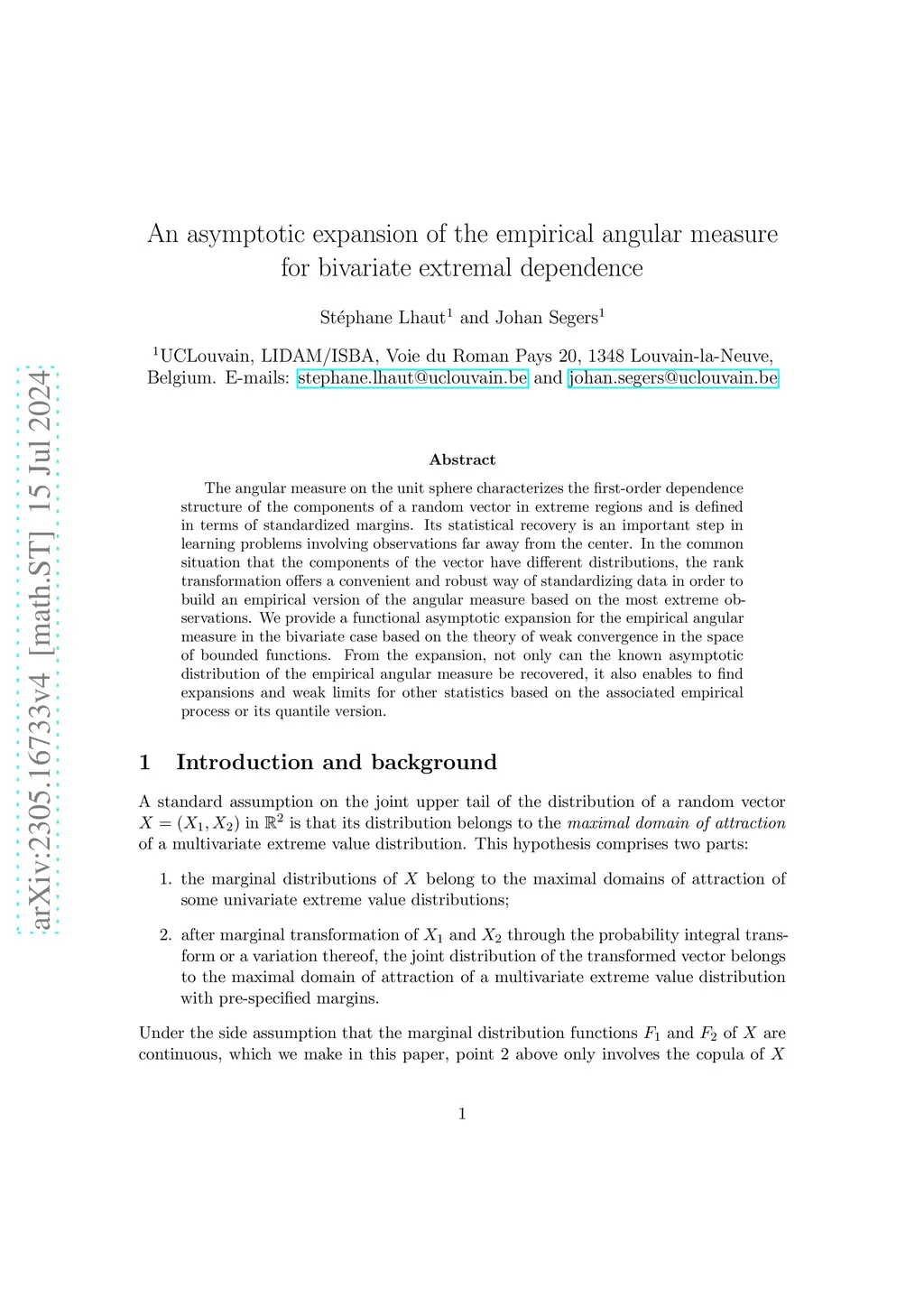 The angular measure on the unit sphere characterizes the first-order dependence structure of the components of a random vector in extreme regions and is defined in terms of standardized margins. Its statistical recovery is an important step in learning problems involving observations far away from the center. In the common situation that the components of the vector have different distributions, the rank transformation offers a convenient and robust way of standardizing data in order to build an empirical version of the angular measure based on the most extreme observations. We provide a functional asymptotic expansion for the empirical angular measure in the bivariate case based on the theory of weak convergence in the space of bounded functions. From the expansion, not only can the known asymptotic distribution of the empirical angular measure be recovered, it also enables to find expansions and weak limits for other statistics based on the associated empirical process or its quantile version.