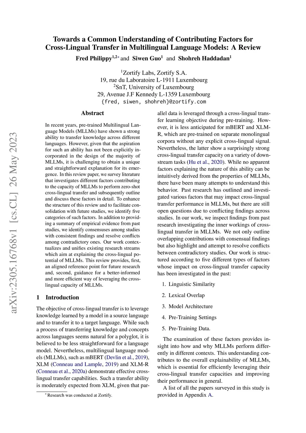 Towards a Common Understanding of Contributing Factors for Cross-Lingual