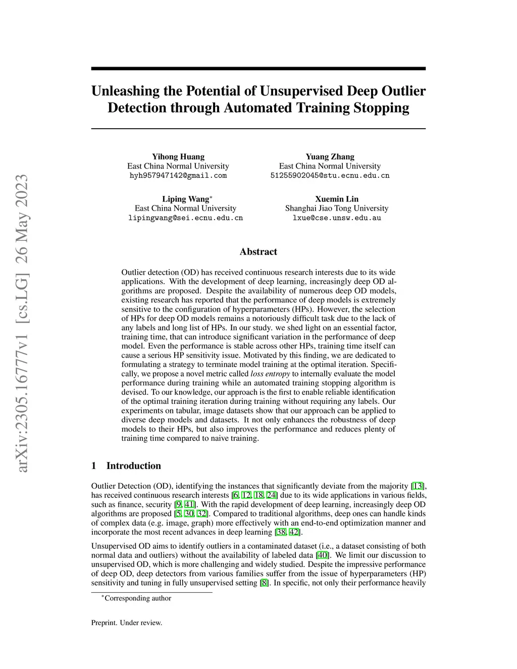 Outlier detection (OD) has received continuous research interests due to its wide applications. With the development of deep learning, increasingly deep OD algorithms are proposed. Despite the availability of numerous deep OD models, existing research has reported that the performance of deep models is extremely sensitive to the configuration of hyperparameters (HPs). However, the selection of HPs for deep OD models remains a notoriously difficult task due to the lack of any labels and long list of HPs. In our study. we shed light on an essential factor, training time, that can introduce significant variation in the performance of deep model. Even the performance is stable across other HPs, training time itself can cause a serious HP sensitivity issue. Motivated by this finding, we are dedicated to formulating a strategy to terminate model training at the optimal iteration. Specifically, we propose a novel metric called loss entropy to internally evaluate the model performance during training while an automated training stopping algorithm is devised. To our knowledge, our approach is the first to enable reliable identification of the optimal training iteration during training without requiring any labels. Our experiments on tabular, image datasets show that our approach can be applied to diverse deep models and datasets. It not only enhances the robustness of deep models to their HPs, but also improves the performance and reduces plenty of training time compared to naive training.