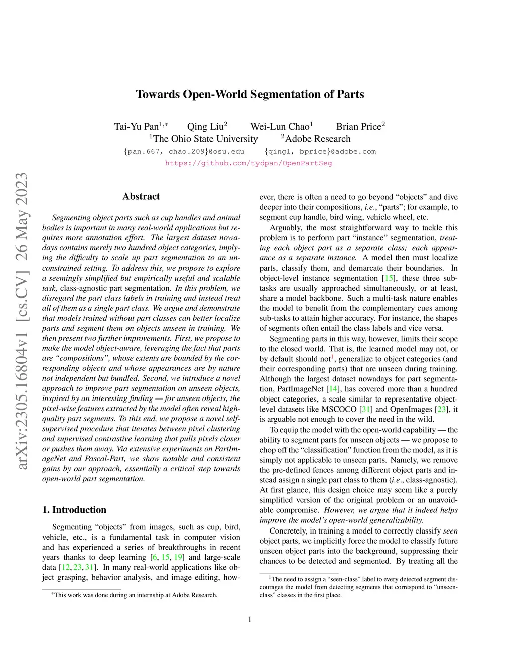 Towards Open-World Segmentation of Parts