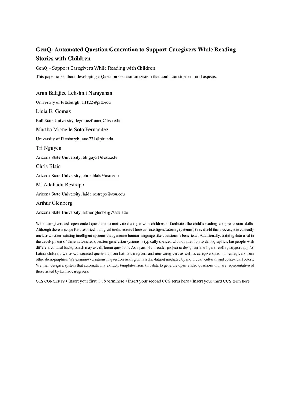 GenQ: Automated Question Generation to Support Caregivers While Reading