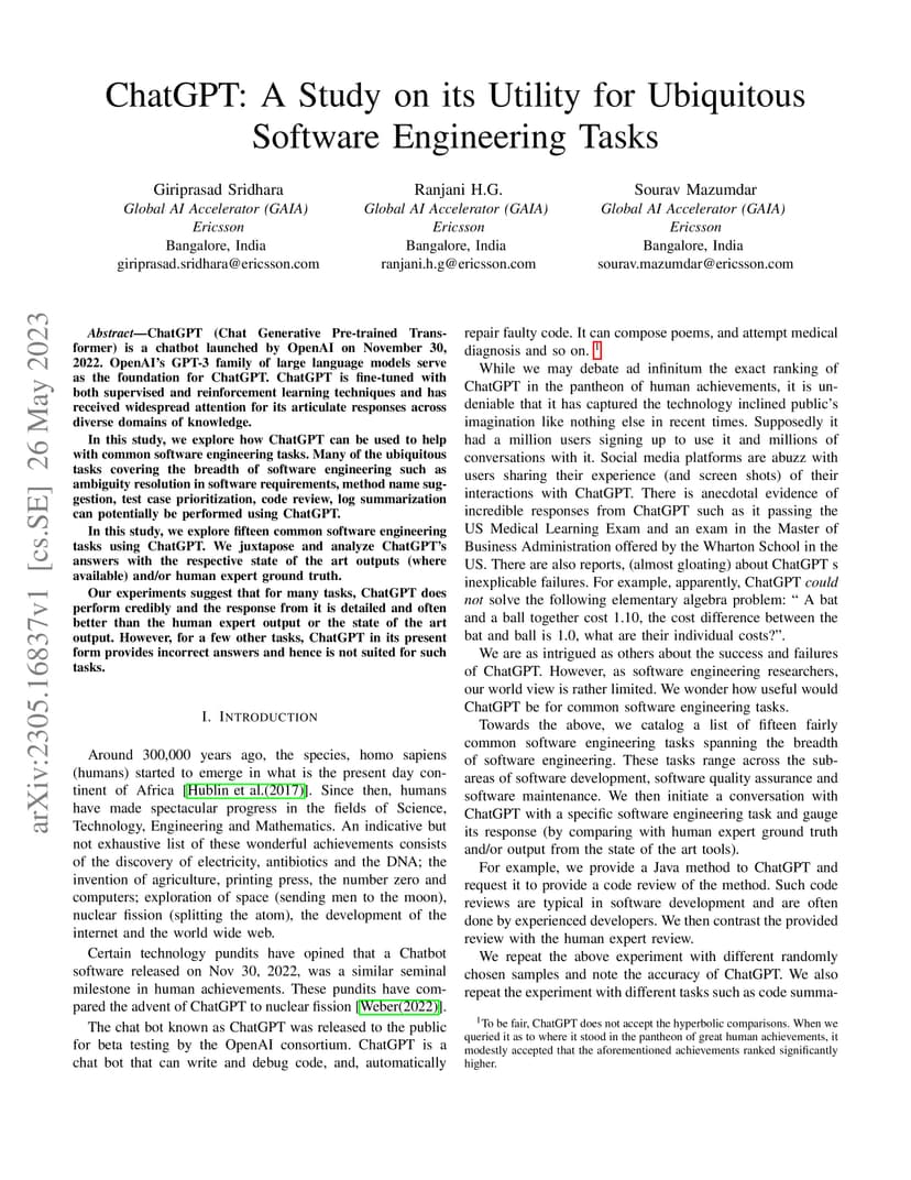 ChatGPT: A Study on its Utility for Ubiquitous Software Engineering
