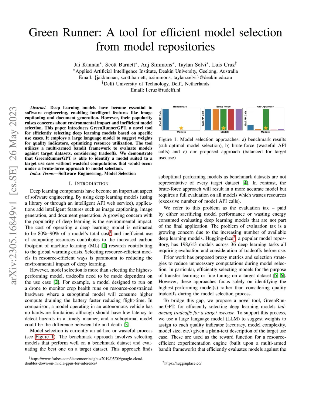 Green Runner: A tool for efficient model selection from model