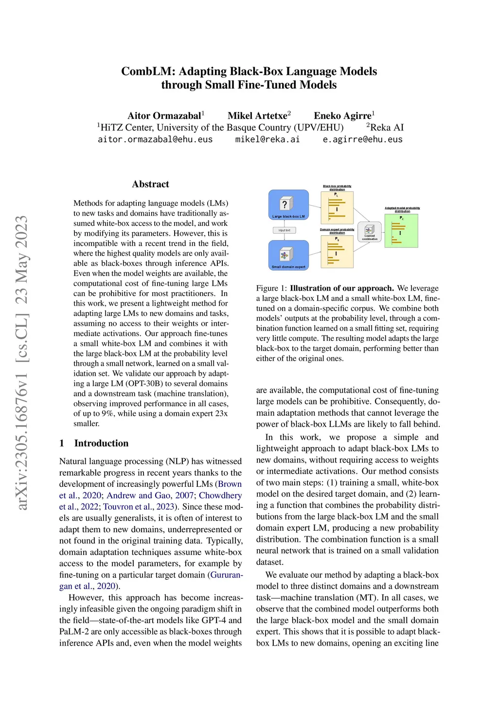 CombLM: Adapting Black-Box Language Models through Small Fine-Tuned