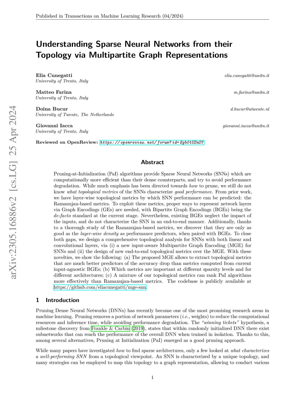 Pruning-at-Initialization (PaI) algorithms provide Sparse Neural Networks (SNNs) which are computationally more efficient than their dense counterparts, and try to avoid performance degradation. While much emphasis has been directed towards \emph{how} to prune, we still do not know \emph{what topological metrics} of the SNNs characterize \emph{good performance}. From prior work, we have layer-wise topological metrics by which SNN performance can be predicted: the Ramanujan-based metrics. To exploit these metrics, proper ways to represent network layers via Graph Encodings (GEs) are needed, with Bipartite Graph Encodings (BGEs) being the \emph{de-facto} standard at the current stage. Nevertheless, existing BGEs neglect the impact of the inputs, and do not characterize the SNN in an end-to-end manner. Additionally, thanks to a thorough study of the Ramanujan-based metrics, we discover that they are only as good as the \emph{layer-wise density} as performance predictors, when paired with BGEs. To close both gaps, we design a comprehensive topological analysis for SNNs with both linear and convolutional layers, via (i) a new input-aware Multipartite Graph Encoding (MGE) for SNNs and (ii) the design of new end-to-end topological metrics over the MGE. With these novelties, we show the following: (a) The proposed MGE allows to extract topological metrics that are much better predictors of the accuracy drop than metrics computed from current input-agnostic BGEs; (b) Which metrics are important at different sparsity levels and for different architectures; (c) A mixture of our topological metrics can rank PaI algorithms more effectively than Ramanujan-based metrics. The codebase is publicly available at https://github.com/eliacunegatti/mge-snn.