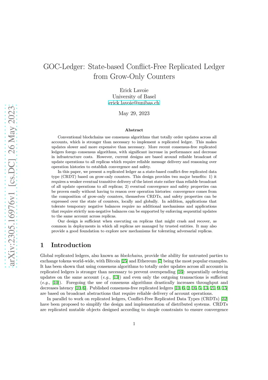 GOC-Ledger: State-based Conflict-Free Replicated Ledger from Grow-Only