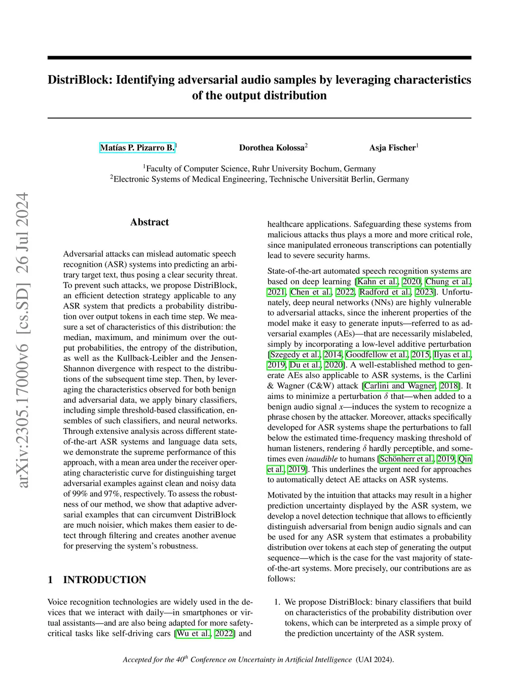 DistriBlock: Identifying adversarial audio samples by leveraging