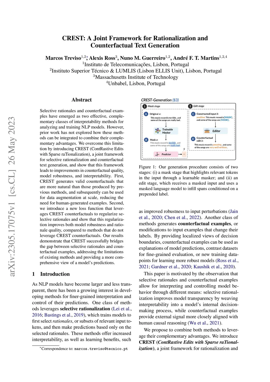 CREST: A Joint Framework for Rationalization and Counterfactual Text