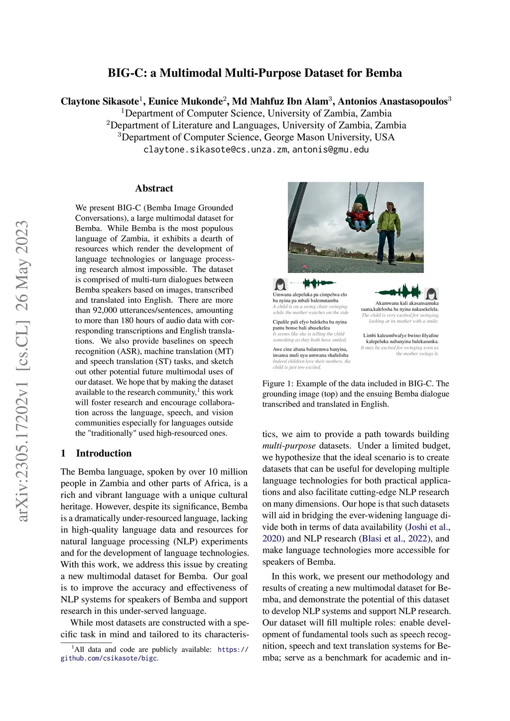 BIG-C: a Multimodal Multi-Purpose Dataset for Bemba