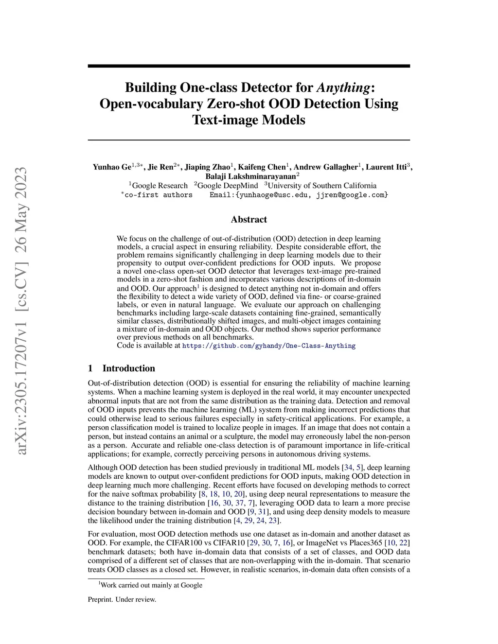 Building One-class Detector for Anything: Open-vocabulary Zero-shot OOD