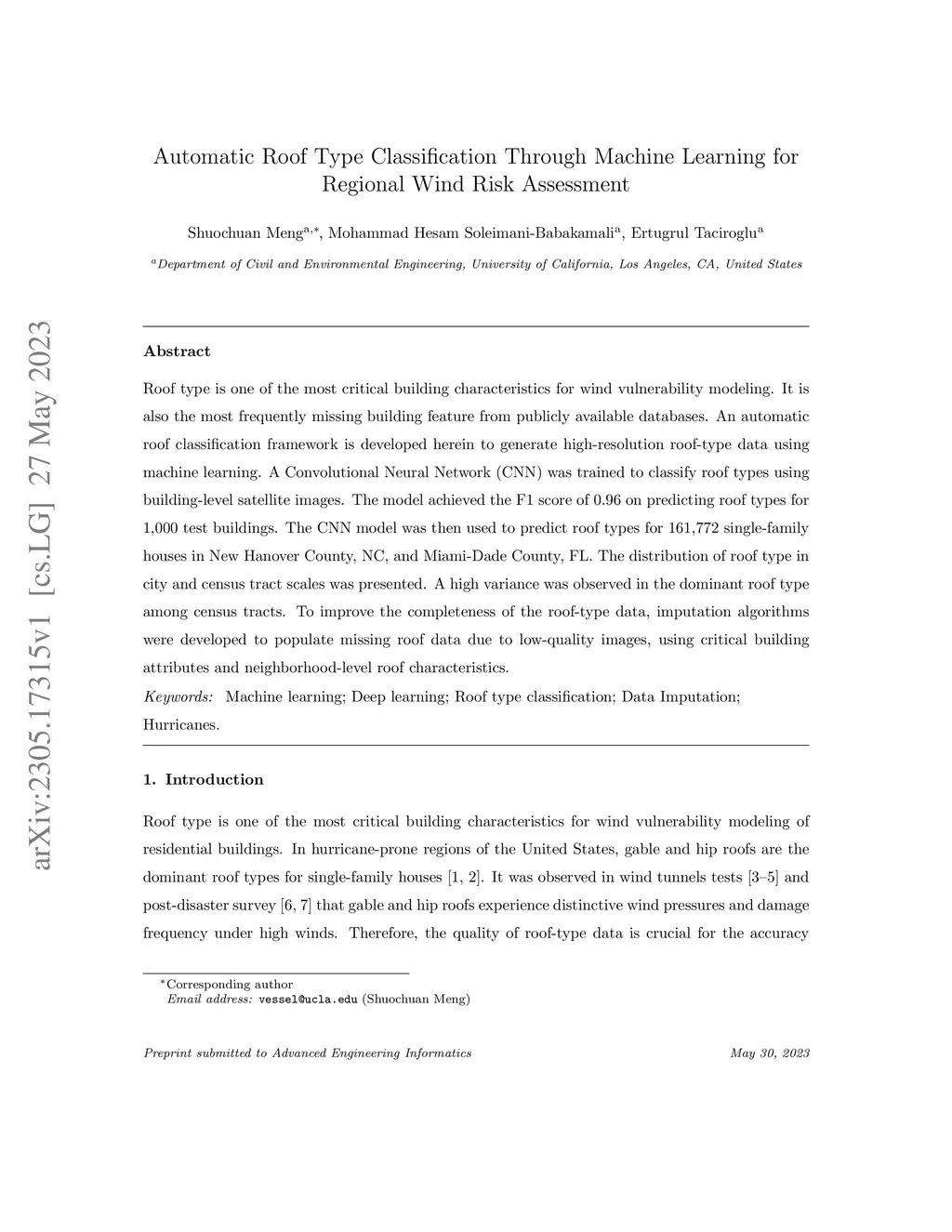 Automatic Roof Type Classification Through Machine Learning for Regional