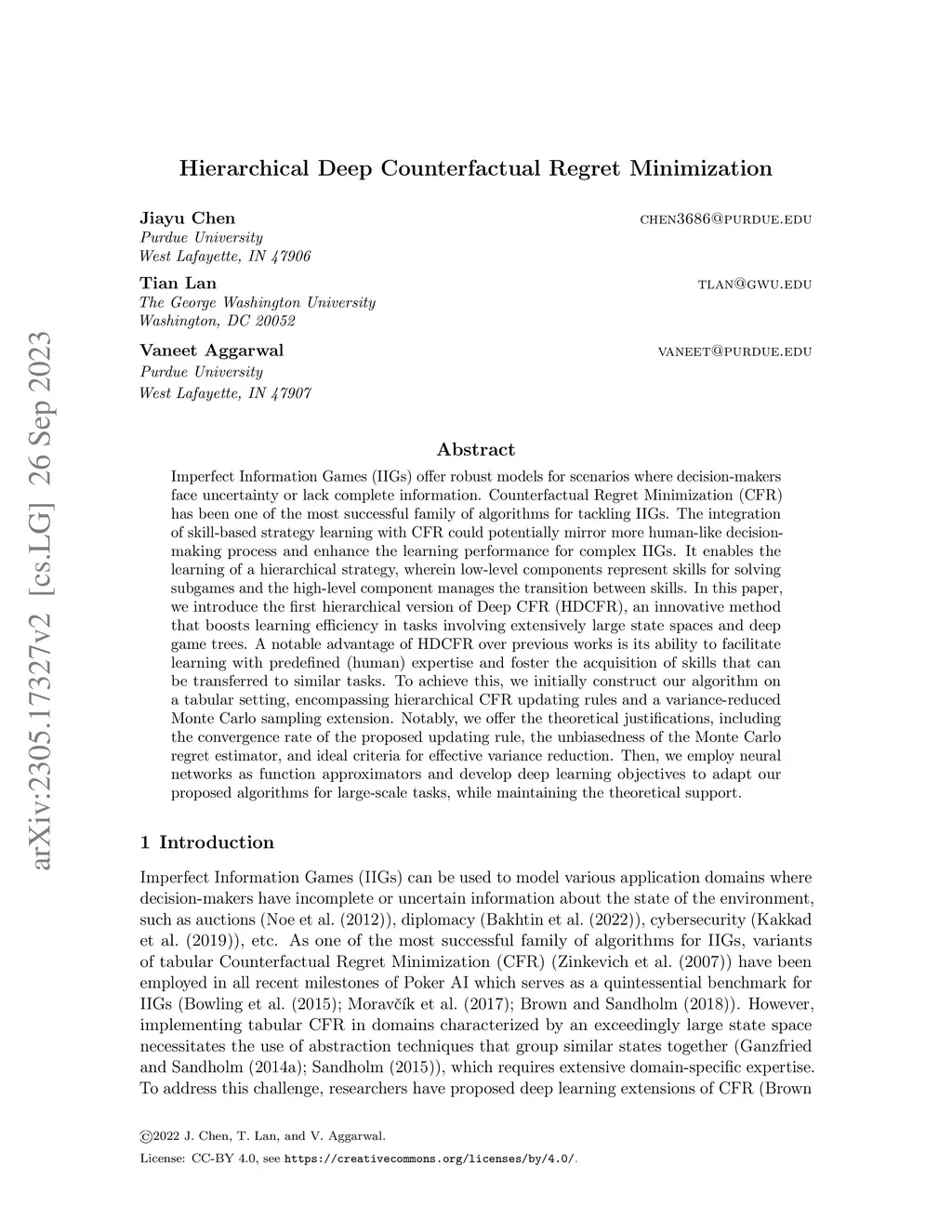 Imperfect Information Games (IIGs) offer robust models for scenarios where decision-makers face uncertainty or lack complete information. Counterfactual Regret Minimization (CFR) has been one of the most successful family of algorithms for tackling IIGs. The integration of skill-based strategy learning with CFR could potentially mirror more human-like decision-making process and enhance the learning performance for complex IIGs. It enables the learning of a hierarchical strategy, wherein low-level components represent skills for solving subgames and the high-level component manages the transition between skills. In this paper, we introduce the first hierarchical version of Deep CFR (HDCFR), an innovative method that boosts learning efficiency in tasks involving extensively large state spaces and deep game trees. A notable advantage of HDCFR over previous works is its ability to facilitate learning with predefined (human) expertise and foster the acquisition of skills that can be transferred to similar tasks. To achieve this, we initially construct our algorithm on a tabular setting, encompassing hierarchical CFR updating rules and a variance-reduced Monte Carlo sampling extension. Notably, we offer the theoretical justifications, including the convergence rate of the proposed updating rule, the unbiasedness of the Monte Carlo regret estimator, and ideal criteria for effective variance reduction. Then, we employ neural networks as function approximators and develop deep learning objectives to adapt our proposed algorithms for large-scale tasks, while maintaining the theoretical support.