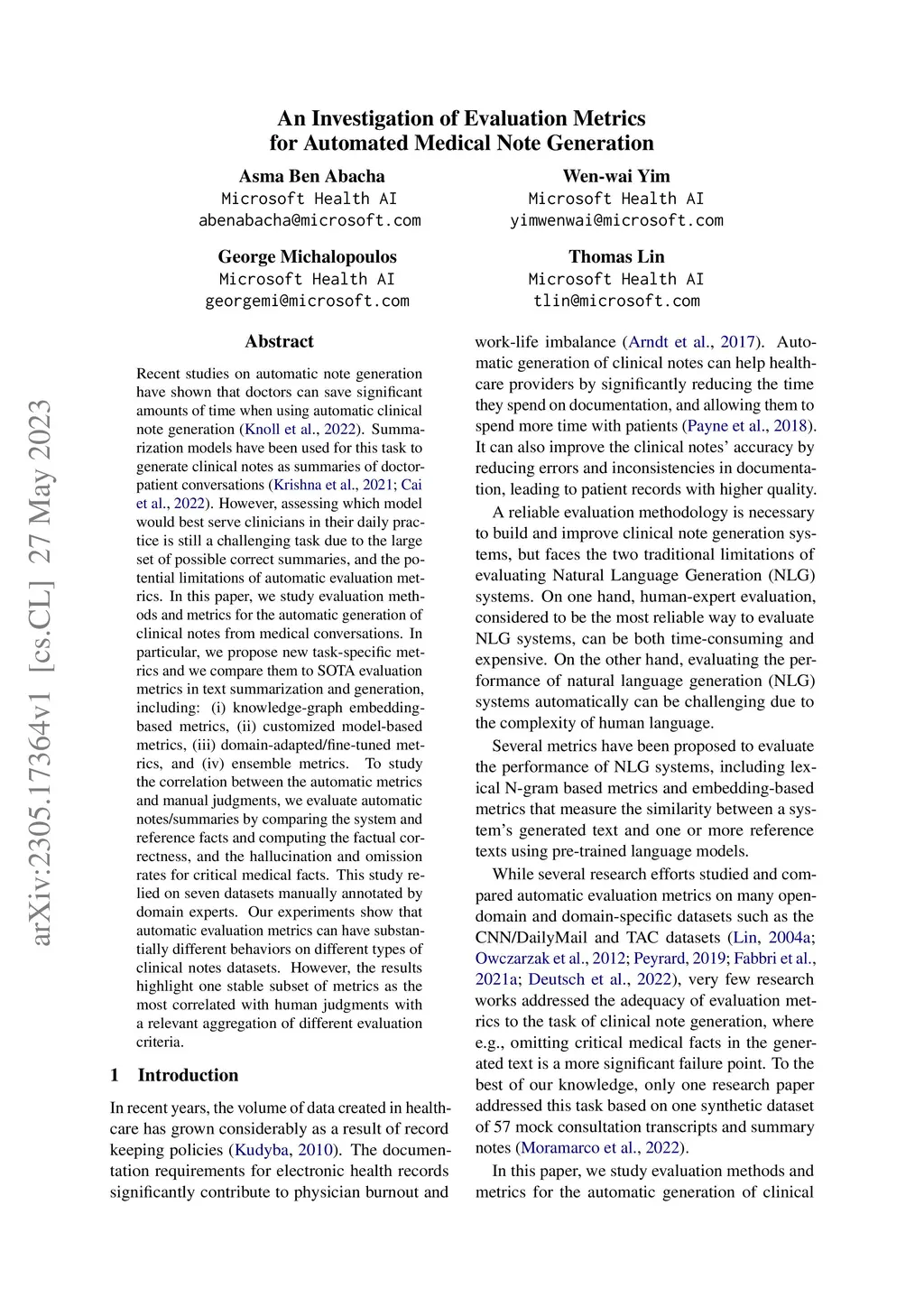 An Investigation of Evaluation Metrics for Automated Medical Note