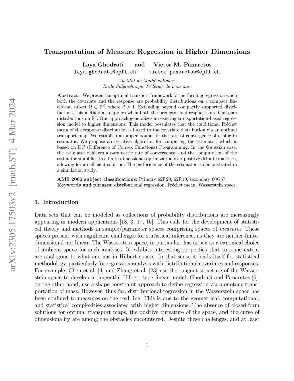 We present an optimal transport framework for performing regression when both the covariate and the response are probability distributions on a compact Euclidean subset , where . Extending beyond compactly supported distributions, this method also applies when both the predictor and responses are Gaussian distributions on . Our approach generalizes an existing transportation-based regression model to higher dimensions. This model postulates that the conditional Fr\échet mean of the response distribution is linked to the covariate distribution via an optimal transport map. We establish an upper bound for the rate of convergence of a plug-in estimator. We propose an iterative algorithm for computing the estimator, which is based on DC (Difference of Convex Functions) Programming. In the Gaussian case, the estimator achieves a parametric rate of convergence, and the computation of the estimator simplifies to a finite-dimensional optimization over positive definite matrices, allowing for an efficient solution. The performance of the estimator is demonstrated in a simulation study.