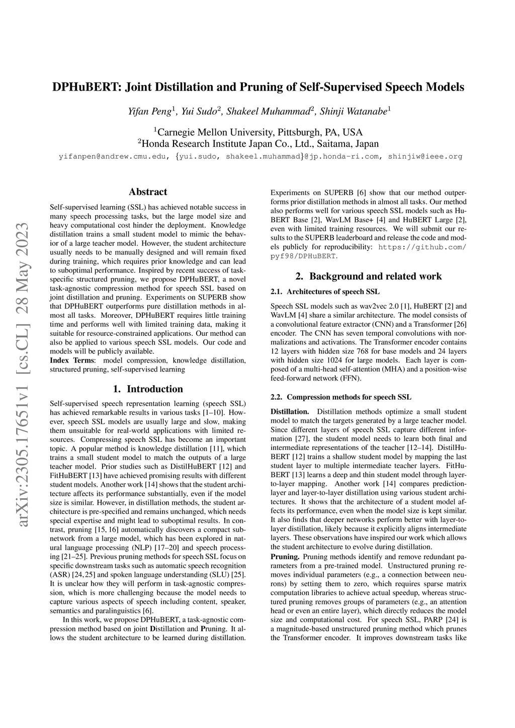DPHuBERT: Joint Distillation and Pruning of Self-Supervised Speech
