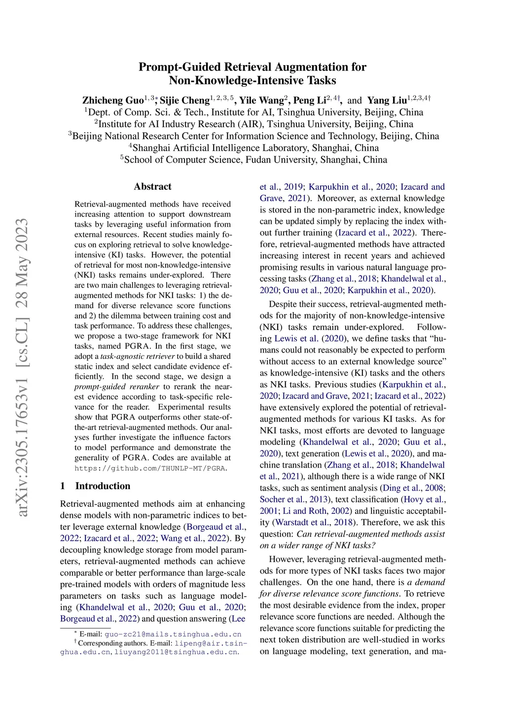 Retrieval-augmented methods have received increasing attention to support downstream tasks by leveraging useful information from external resources. Recent studies mainly focus on exploring retrieval to solve knowledge-intensive (KI) tasks. However, the potential of retrieval for most non-knowledge-intensive (NKI) tasks remains under-explored. There are two main challenges to leveraging retrieval-augmented methods for NKI tasks: 1) the demand for diverse relevance score functions and 2) the dilemma between training cost and task performance. To address these challenges, we propose a two-stage framework for NKI tasks, named PGRA. In the first stage, we adopt a task-agnostic retriever to build a shared static index and select candidate evidence efficiently. In the second stage, we design a prompt-guided reranker to rerank the nearest evidence according to task-specific relevance for the reader. Experimental results show that PGRA outperforms other state-of-the-art retrieval-augmented methods. Our analyses further investigate the influence factors to model performance and demonstrate the generality of PGRA. Codes are available at https://github.com/THUNLP-MT/PGRA.
